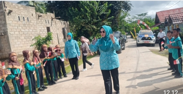 TANAH BUMBU, kontak24 - Kehadiran Ketua Tim Penggerak PKK Kabupaten Tanah Bumbu, Andi Irmayani Rudi Latif, di Desa Pematang Ulin, Kecamatan Karang Bintang, Jumat (25/07/25), disambut dengan penuh keceriaan oleh anak-anak setempat. Kunjungan kerja tersebut dalam rangka menghadiri kegiatan penilaian Lomba Perilaku Hidup Bersih dan Sehat (PHBS) tingkat Provinsi Kalimantan Selatan, di mana Desa Pematang Ulin menjadi duta Tanah Bumbu dalam ajang tersebut.